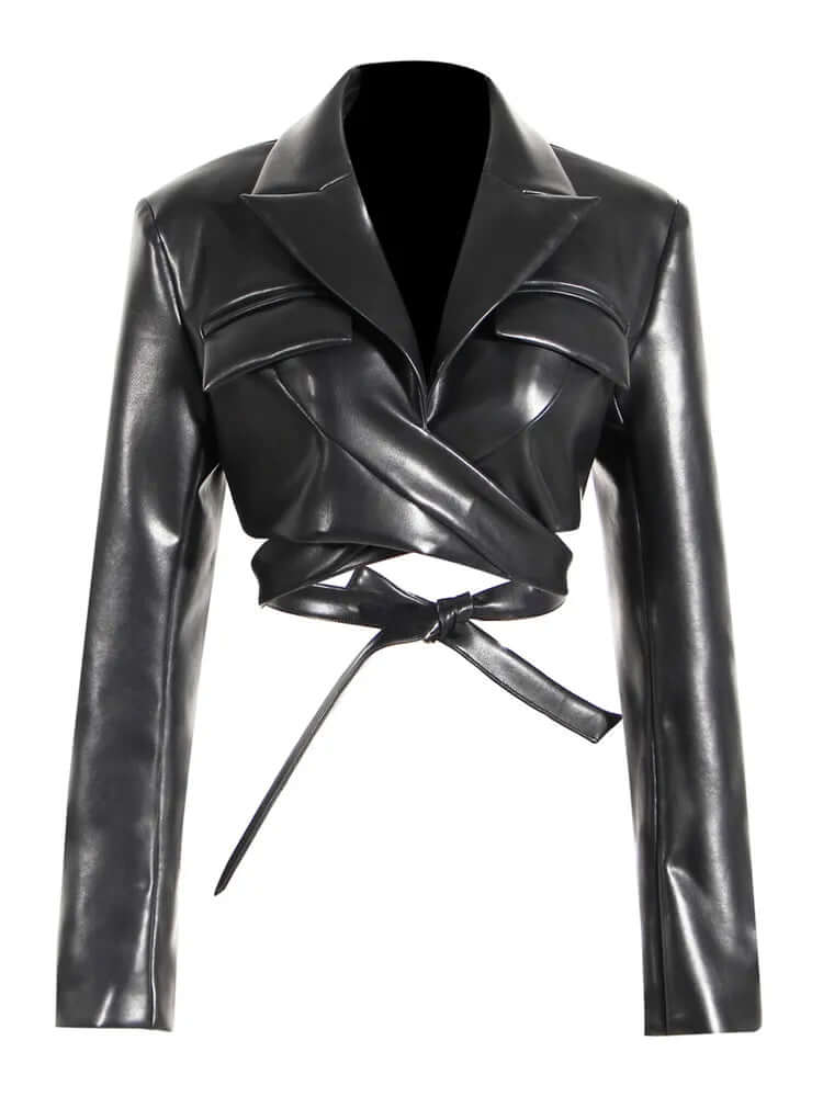 Women's PU Leather Jacket with Waistband
