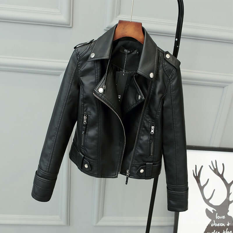 Women's Slim Fit PU Leather Motorcycle Jacket