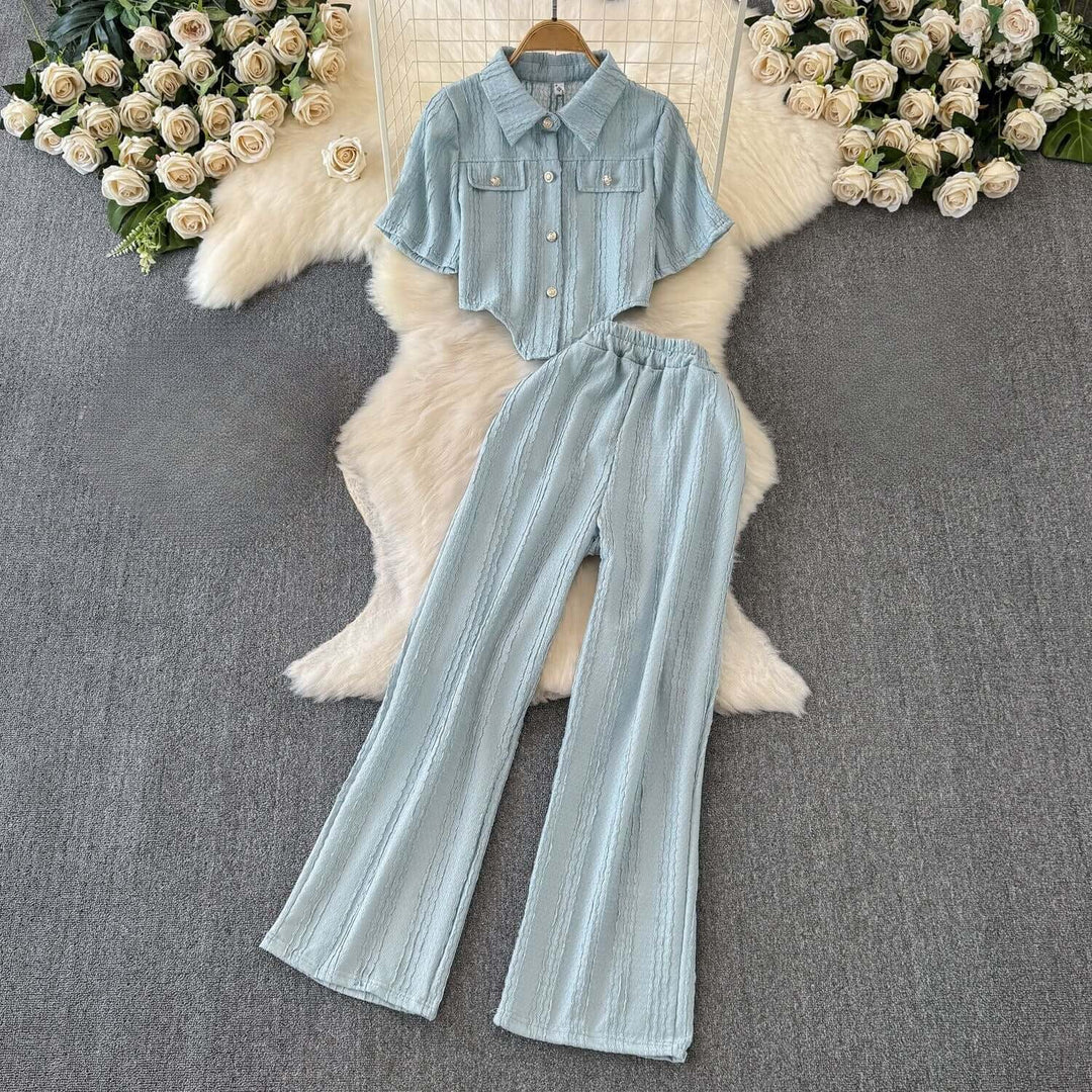 Women's Cropped Top and Wide Leg Trousers Set