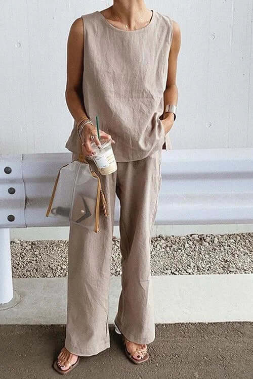 Women's Sleeveless O-Neck Top & Wide-Leg Pants Set