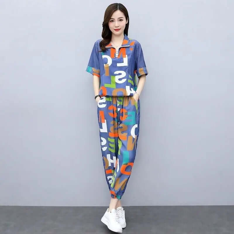 Mosaic Print Two-Piece Set - Women's Cropped Top & Pants